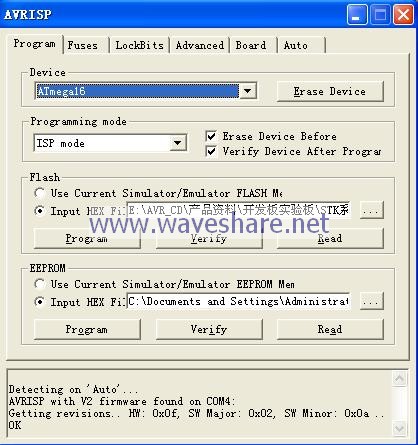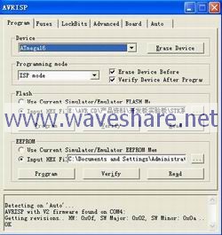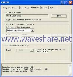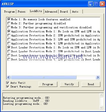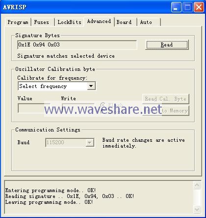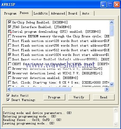 详细的烧写介绍请参考:“使用AVRISP方式烧写程序及熔丝”。