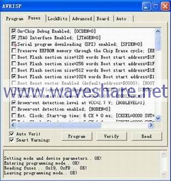 ● Program、Verify和Read分别对应编程、校验和读取,正确的配置熔丝的方法是先读取,先后修改需要修改的地方,再编程写回。在Auto Verity选项选中时无需再点Verify按钮进行校验。