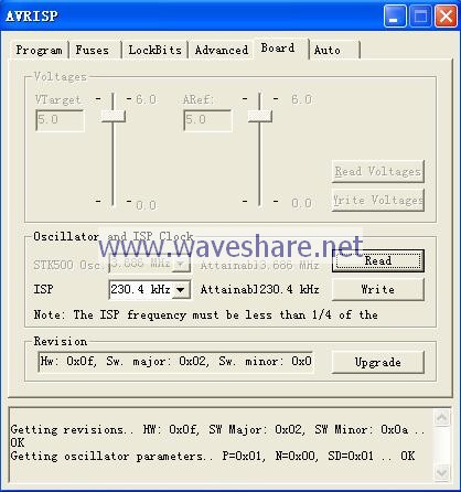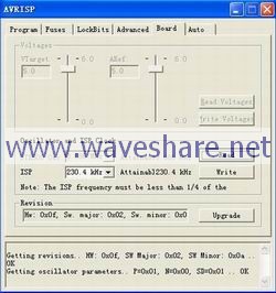 ● Revision 版本号及升级,这里显示当前hex文件的版本号,如果AVR studio内的软件版本高于仿真器的版本,右边的Upgrade会可用,如果匹配则该按钮为灰色。