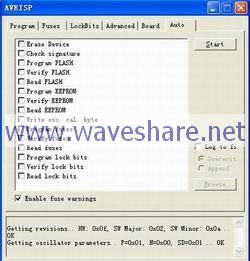 ● 自动处理:擦除芯片、检测芯片ID号、写flash、写EEPROM、写熔丝位、写锁定位以及他们对应的校验,一次完成,状态栏会显示正在进行的操作。