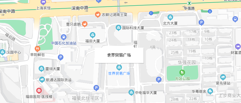 深圳市福田区福虹路世贸广场裙楼南侧二楼 (蓝色的“众创空间”招牌左边的入口上) 查看大图