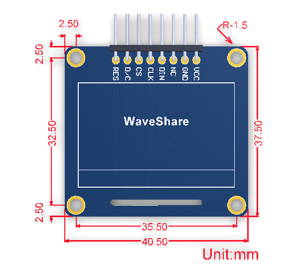 | 1.5inch RGB OLED Module | OLED | 65K彩色 | 128×128 | 26.86×26.86 | 3/4-wire SPI | SSD1351 | 44.5×37.0 | PH2.0端子 | ||