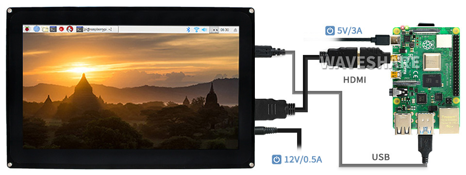 10.1inch HDMI LCD (B) (带外壳) 1280×800 HDMI IPS 170° 电容 USB 钢化玻璃 - - - -