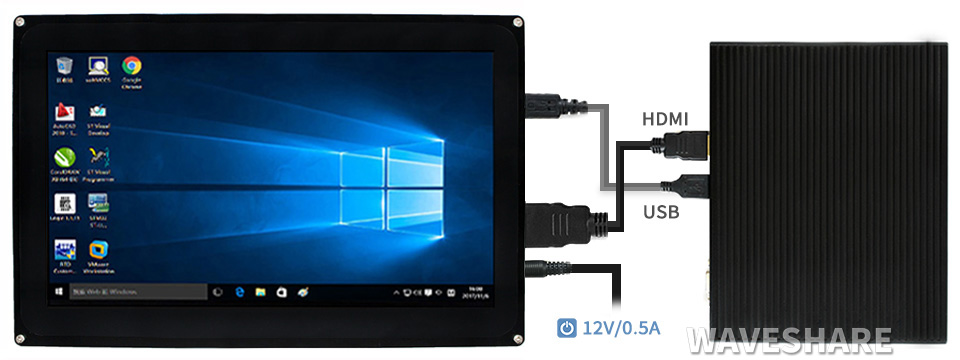 10.1inch HDMI LCD (G) (带外壳) 1920×1200 HDMI IPS 160° 电容 USB 钢化玻璃