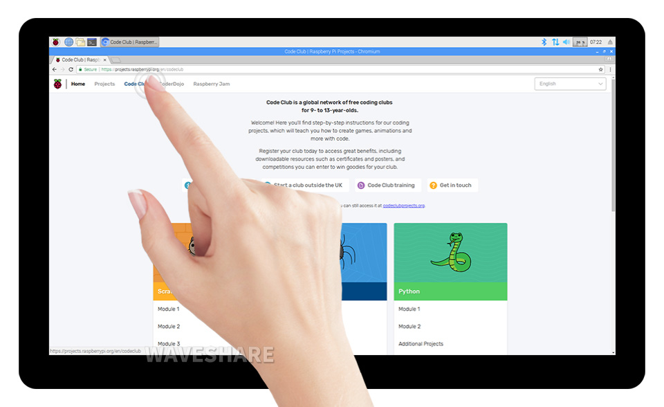 支持 Raspberry Pi OS,十点触控,免驱