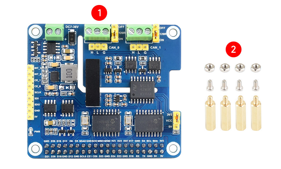 你还在为树莓派没有 CAN 接口而烦恼?或者想要堆叠扩展 2 路以上的隔离抗干扰性强的 CAN 总线接口?那么,找我就对了。我支持扩展 2 路带隔离保护的 CAN 总线接口,可与 2-CH CAN HAT 、 2-CH CAN FD HAT 堆叠使用,扩展多路 CAN 使用。采用 HAT+ 标准设计,适用于树莓派 5/4/3 和 Zero 等 Raspberry Pi 系列主板。我还板载多种保护电路,带电气隔离,通信安全可靠,支持 7~36V 宽电压供电,可适用于工业应用场景。