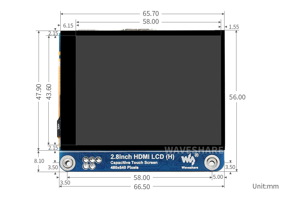 | 2.8inch HDMI LCD (H) | 480×640 | HDMI | IPS | 160° | 电容 | Type-C / I2C | 钢化玻璃 | √ | - | - | √ | √ | √ |