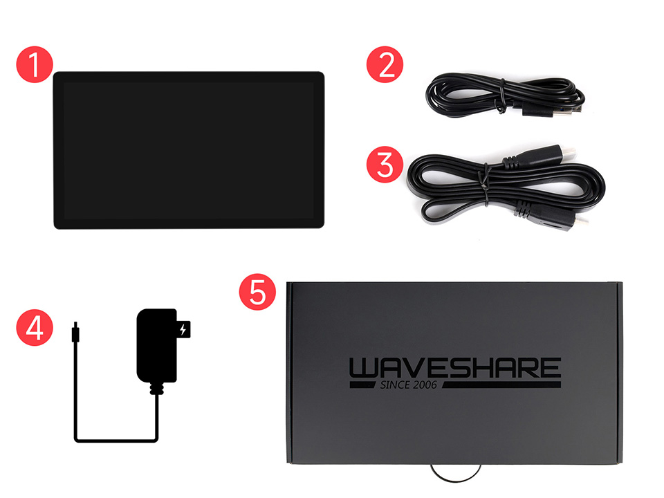 13.3inch HDMI LCD (H) (带外壳) V2 1920×1080 HDMI/VGA IPS 178° 电容 USB 钢化玻璃 -