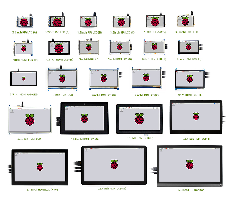 | 15.6inch HDMI LCD (H) | 1920×1080 | HDMI | 不仅Pi | 387 × 232 | 电容 | √ | IPS | √ | √ | ★★★★★ |