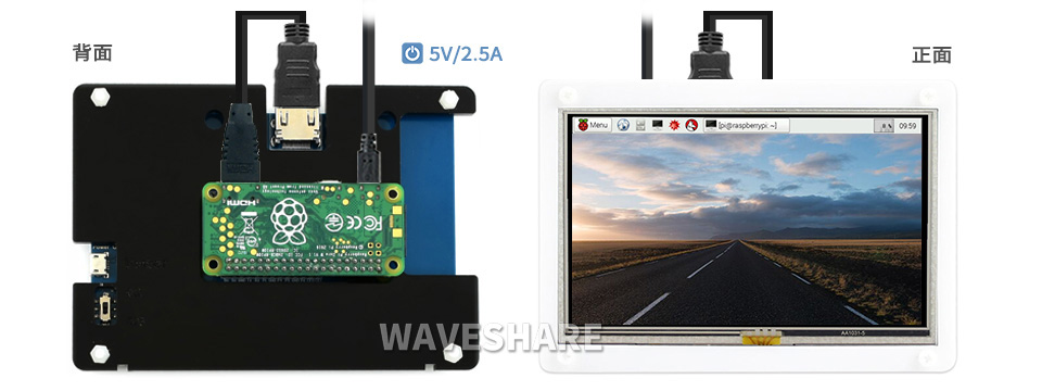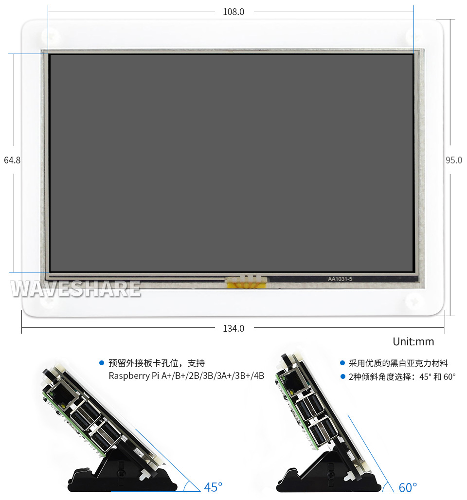 | 5inch HDMI LCD (B) (带外壳) | 800×480 | HDMI | TFT | - | 电阻 | USB | - | - | - | - | √ | - | √ |