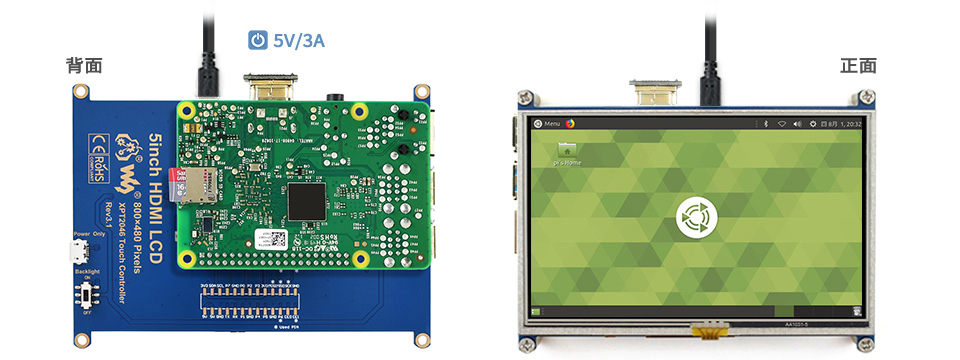 | 5inch HDMI LCD (B) (带外壳) | 800×480 | HDMI | TFT | - | 电阻 | USB | - | - | - | - | √ | - | √ |