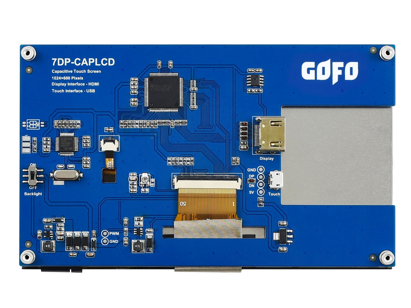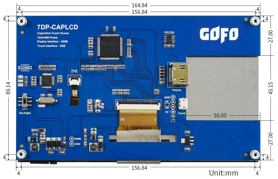 7DP-CAPLCD是一款通用HDMI显示屏,IPS显示面板,1024×600超清硬件分辨率,带电容触摸面板,最高可支持五点触控, 支持树莓派和各种mini PC,也可以当成计算机显示器。