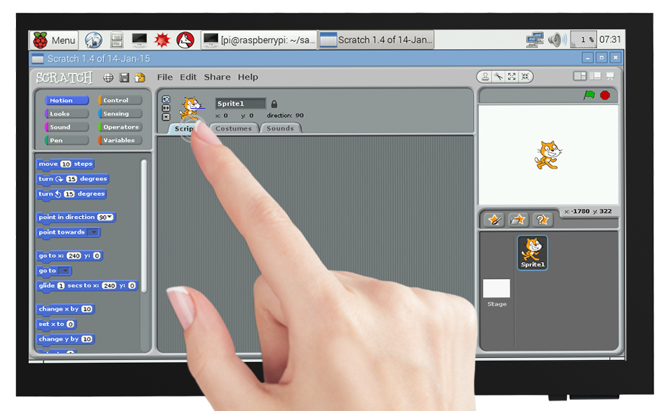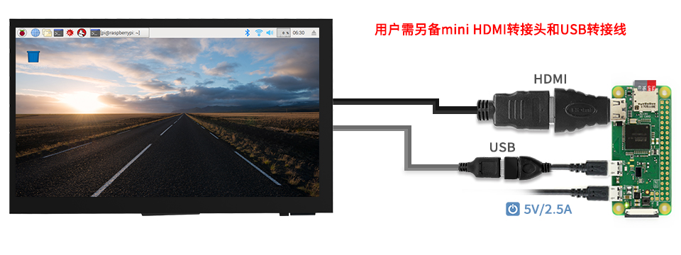 连接树莓派使用时,支持Raspbian/Ubuntu/Kali/Retropie和 WIN 10 IOT系统,支持单点触控(在某些软件界面可以支持多点触控,最高支持5点触控,具体视系统情况而定)。
