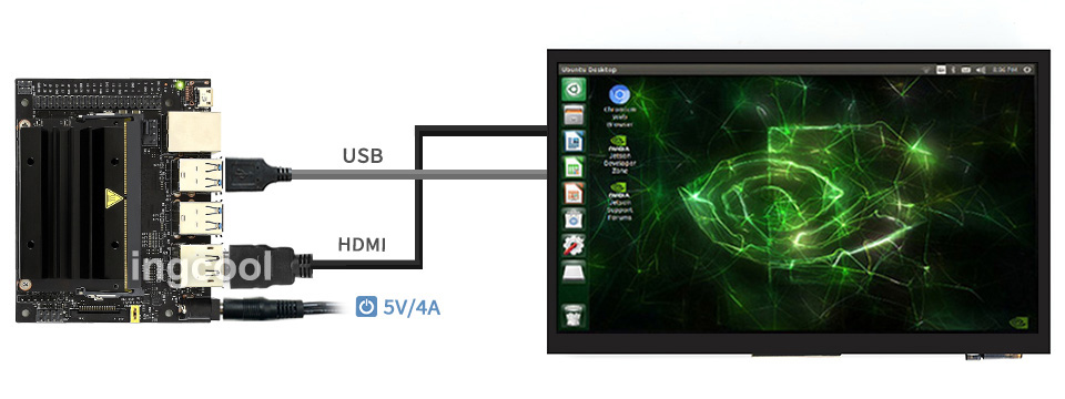 连接Jetson Nano Developer Kit 使用时,由于主板可以自动适配屏幕,无需另外做配置。