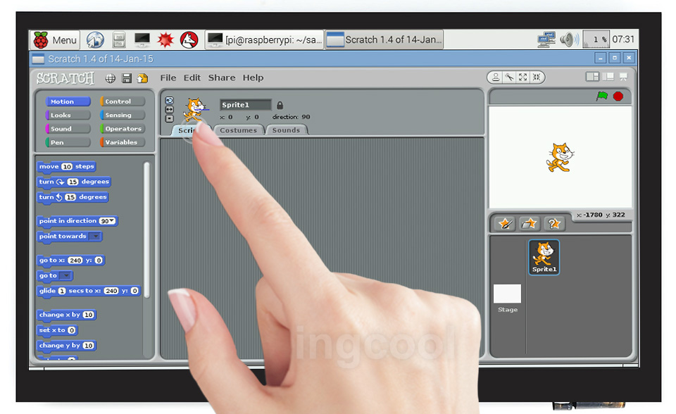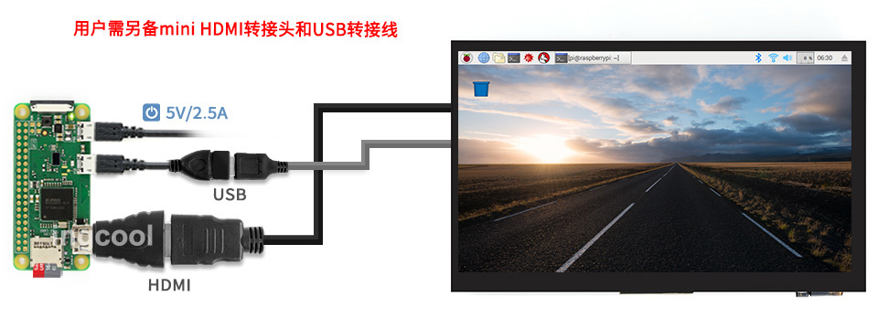 连接树莓派使用时,支持Raspbian/Ubuntu/Kali/Retropie和 WIN 10 IOT系统,支持单点触控(在某些软件界面可以支持多点触控,最高支持5点触控,具体视系统情况而定)。