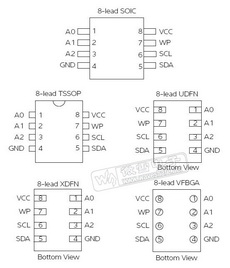 AT24C128C可选节省空间的8脚 JEDEC SOIC,8脚 TSSOP, 8脚 UDFN, 8脚 XDFN 和8脚 VFBGA封装,并通过2-wire串行接口存取。