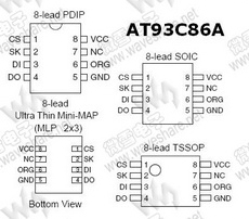 AT93C86A 概述AT93C86的AT93C86A版: AT93C86的AT93C86A版是一款16384 bits的电可擦写可编程只读存储器(EEPROM),组织结构为1024字×16位字长(ORG引脚接Vcc)或者2048字×8位字长(ORG引脚接地)。对于某些强烈要求低功耗和低电压的工业级或商业级应用来说,AT93C86的AT93C86A版是最佳的选择。AT93C86的AT93C86A版具有节省空间的8脚JEDEC PDIP,8脚JEDEC SOIC,8脚超薄 mini-MAP(MLP 2×3),和8脚TSSOP封装。 AT93C86的AT93C86A版可通过片选引脚(CS)使能,并经3-WIRE串口进行访问,3-WIRE串口由数据输入(DI),数据输出(DO),和移位时钟(SK)组成。一旦DI引脚接收到读取指令,AT93C86的AT93C86A版将会进行地址解码并按照时钟脉冲把数据经由DO引脚输出。AT93C86的AT93C86A版的写入周期可自定时完成。并且在写入值钱不需要单独的擦除周期。只有当器件处于“擦/写使能”状态时,写周期才能被执行。在启动写周期时,如果CS引脚被置高,则DO引脚将会输出器件的“准备/忙”状态。 AT93C86的AT93C86A版可选2.7V~5.5V版。 |