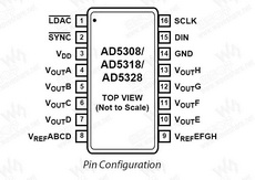 AD5308是八通道8位、缓冲电压输出DAC,提供16引脚TSSOP封装,采用2.5 V至5.5 V单电源供电,3 V时典型功耗为0.7 mA。AD5308内置片内输出放大器,能够提供轨到轨输出摆幅,压摆率为0.7 V/μs。AD5308采用多功能三线式串行接口,能够以最高30 MHz的时钟速率工作,并与标准SPI、QSPI、MICROWIRE、DSP接口标准兼容。