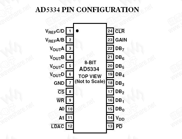 AD5334是四通道、8DAC,采用2.5 V至5.5 V电源供电,3 V时功耗仅500 µA,省电模式下功耗可降至80 nA。AD5334内置一个片内输出缓冲,可将输出同时驱动至两个供电轨。