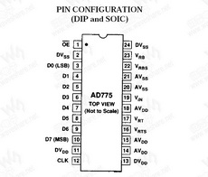 AD775 概述AD775是一款CMOS、低功耗、8位、20 MSPS采样模数转换器(ADC),内置采样功能和片内基准电压偏置电阻,可提供完整8位ADC解决方案。AD775采用流水线式或乒乓两步式Flash架构,可提供最高35 MHz的采样速率,同时保持极低的功耗(60 mW)。 AD775融合了出色的微分非线性(DNL)、高采样速率、低差分增益与相位误差、极低功耗以及+5 V单电源工作等特性,非常适合各种视频与图像采集应用,包括便携式设备应用。 AD775采用300 mil SOIC和400 mil塑料DIP两种封装,可在扩展的商用温度范围(-20°C至+75°C)内工作。 |