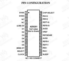 AD9281是一款完整双通道、28 MSPS、8位CMOS ADC,专门针对要求两个ADC高度匹配的应用(例如通信应用中的I/Q通道)进行了优化。28 MHz采样速率和宽输入带宽可涵盖窄带与扩频两种通道。AD9281集成两个8位、28 MSPS ADC、两个输入缓冲放大器、一个内部基准电压源和多路复用数字输出缓冲。