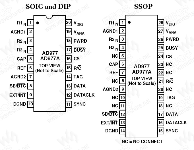 The AD977、AD977A is a high speed, low power 16-bit A/D converter that operates from a single 5 V supply. The AD977A has a throughput rate of 200 kSPS whereas the AD977 has a throughput rate of 100 kSPS. Each part contains a successive approximation, switched capacitor ADC, an internal 2.5 V reference, and a high speed serial interface. The ADC is factory calibrated to minimize all linearity errors. The AD977、AD977A is specified for full scale bipolar input ranges of ±10 V, ±5 V and ±3.3 V, and unipolar ranges of 0 V to 10 V, 0 V to 5 V and 0 V to 4 V.