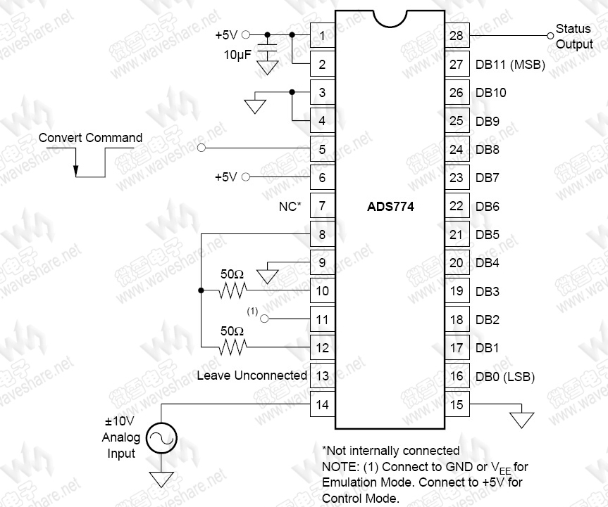 ADS774 概述ADS774是一款12-bit逐次逼近模数转换器,采用了创新的网络电容(CDAC)和低功耗CMOS工艺。在大多数应用中,ADS774可作为ADC574、ADC674和ADC774的替代元件使用。ADS774具有内部采样电路、更低的功耗以及在单个+5V电压下工作的能力。 ADS774具有配套的内部时钟、微处理器接口、三态输出和内部定标电阻以适应0V至+10V、0V至+20V、±5V、或±10V的输入范围。在整个工作温度范围内,ADS774的最大吞吐时间为8.5μs,包括数据获取和转换。 |