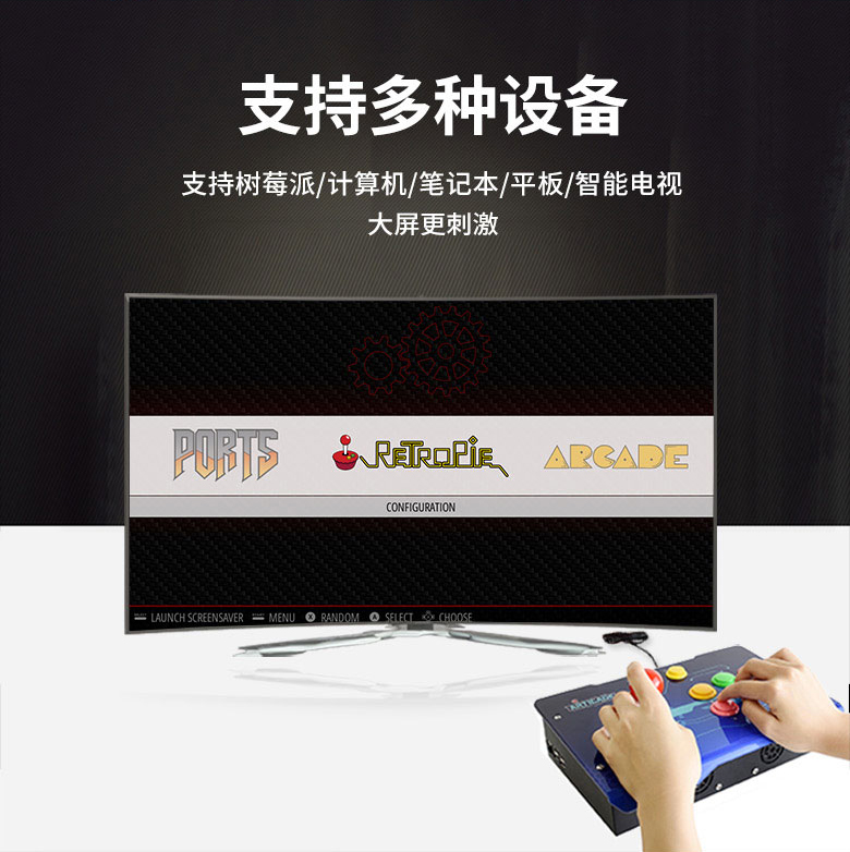 我是一款USB接口的街机摇杆按键控台,支持多平台,可以接入树莓派/电脑/平板/智能电视,免驱、即插即用。