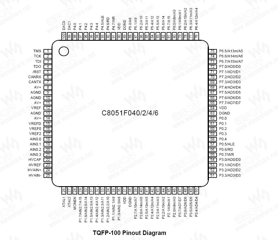 C8051F040是一款完全集成了单片复合信号系统的微控制器。C8051F040具有32个数字I/O引脚,并集成了1个 CAN 2.0B 控制器。C8051F040结合了高度精密的模拟数据转换器和一个高吞吐量8051 CPU,是模拟和计算密集型应用的理想选择。