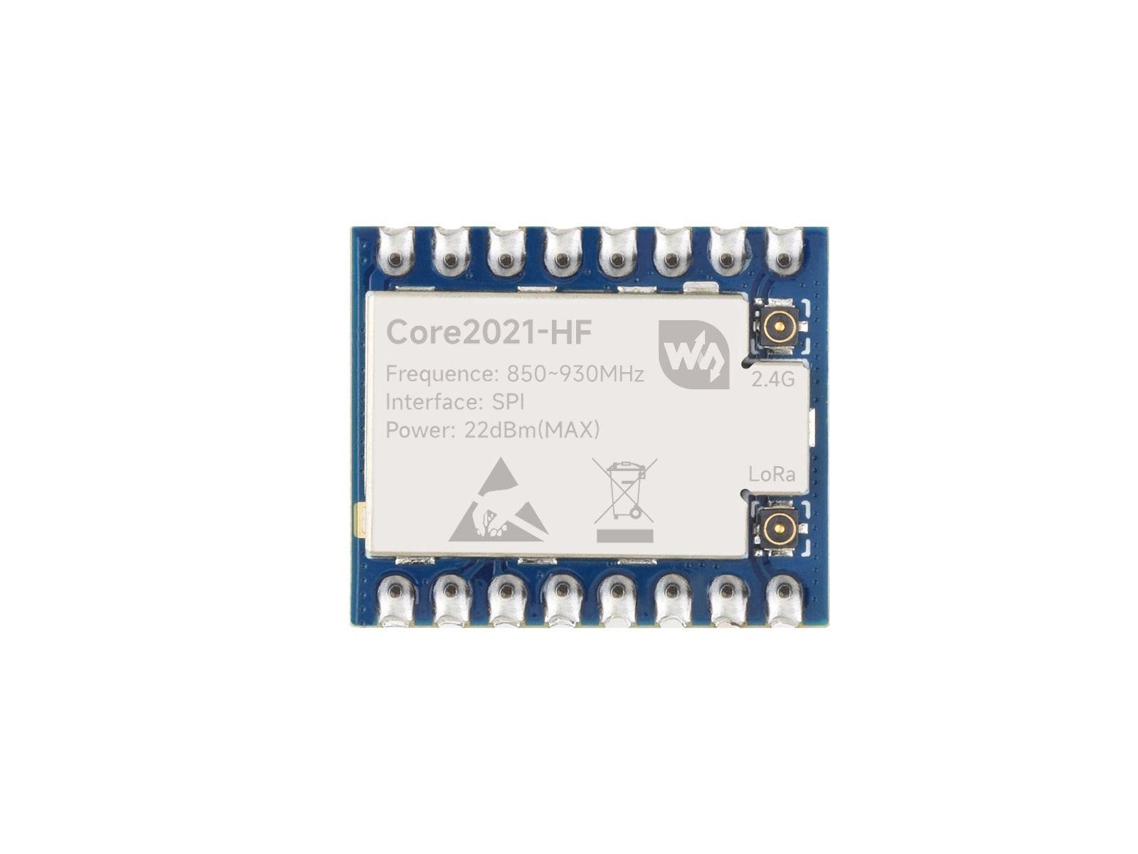 850 ~ 930 | 22 | SF5 ~ SF12 | 3.3V | 发射电流:45mA@14dBm 接收电流:5.3mA@125kHz |