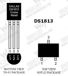 DS1813 概述DS1813经济型复位芯片是一款普通3脚电压监视器,可上电复位,复位状态持续150ms以便电压稳定到容差范围内。电压检测采用温度基准比较电路,一旦检测到电压超出容差范围,将会产生一个低压复位信号。 DS1813的漏极开路输出带有一个5.5 kΩ的内部上拉电阻,用于“线与”电路。DS1813同时还监控着一个基于复位输出的按钮,当按钮被释放时,将产生复位信号。 DS1813经济型复位芯片完美替代了分立元件电路并有效节省了空间,尤其是新型的SOT-23封装。DS1813让任何依赖处理器可靠性操作的系统受益匪浅,对于消费性产品更是明显,比如:打印机、空调、能源管理器、移动电话、PDA和机顶盒等。 |