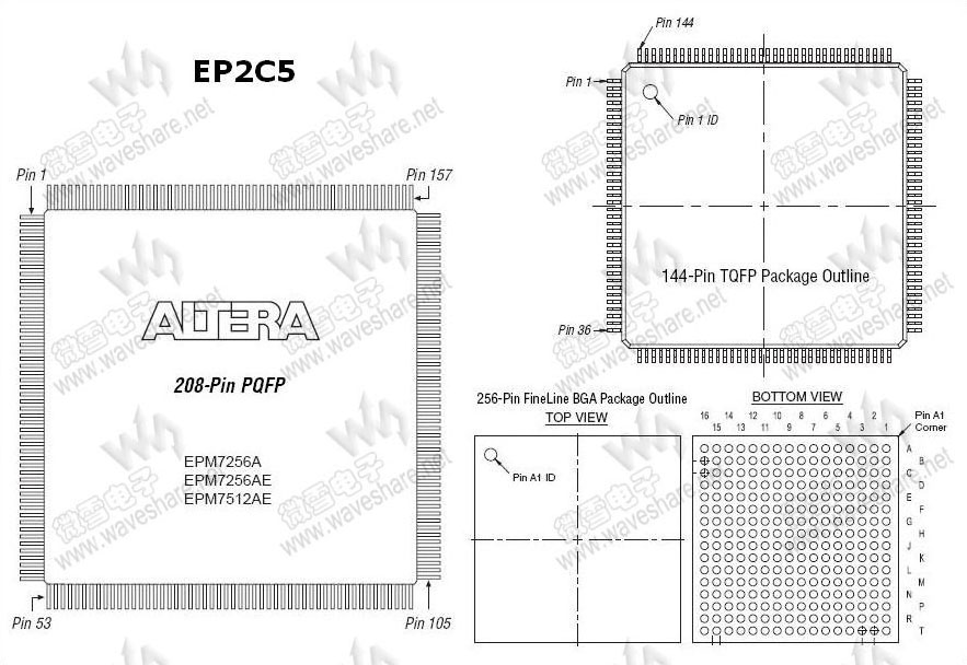 EP2C5封装与可使用的引脚数(与同系列其它型号相比):