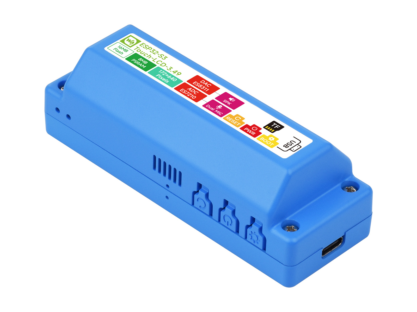 ESP32-S3 高性能开发板,搭载 3.49 英寸 IPS 电容触摸屏,172×640 分辨率,集成 ESP32-S3R8 双核处理器