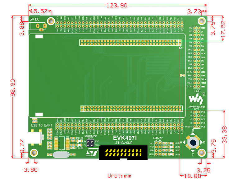 引出了所有I/O资源 带JTAG/SWD调试下载接口