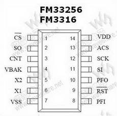 FM33256 概述FM33256集成了铁电存储器FRAM和处理器外围系统最常用的一些功能。其主要功能特性包括非易失性存储器,实时时钟(RTC),低压复位,看门狗定时器,非易失性事件计数器,可锁定的64位串行数据区,以及可用于掉电中断检测的通用比较器。FM33256工作在2.7V~3.6V 的电压范围内。 FM33256包含256Kb的非易失性存储器。高速写入能力和无限读/写次数使得该存储器可以充当外接RAM或者用于常规非易失性存储。FM33256中的存储器是真正的非易失性存储器,而非依靠后备电池来保持数据。 FM33256的实时时钟(RTC)以BCD码的形式提供时间和日期信息。它由外部电池或电容固定供电。计时器使用一个32.768kHz的通用外部晶振,并提供一种允许软件调整计时精度的校准模式。 |