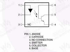 The general purpose optocouplers H11A1 / H11A1M consists of a gallium arsenide infrared emitting diode driving a silicon phototransistor in a 6-pin dual in-line package.