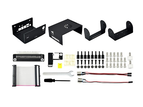 在双目视觉套餐的基础上增加一个铝合金外壳,把无处安放的配件整合到一个迷你的小箱子当中是相当不错的选择,180 度角度旋转的摄像头支架是其一大特色,外壳整体坚固、防尘、美观,在散热能力上也有不错的表现。