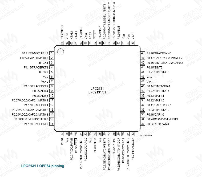 LPC2131 概述The LPC2131 microcontrollers are based on a 16/32-bit ARM7TDMI-S CPU with real-time emulation and embedded trace support, that combine the microcontroller with 32 kB of embedded high-speed flash memory. A 128-bit wide memory interface and a unique accelerator architecture enable 32-bit code execution at maximum clock rate. For critical code size applications, the alternative 16-bit Thumb mode reduces code by more than 30 pct with minimal performance penalty. Due to their tiny size and low power consumption, the LPC2131 microcontrollers are ideal for applications where miniaturization is a key requirement, such as access control and point-of-sale. With a wide range of serial communications interfaces and on-chip SRAM of 8 kB, the LPC2131 devices are very well suited for communication gateways and protocol converters, soft modems, voice recognition and low-end imaging, providing both large buffer size and high processing power. Various 32-bit timers, single or dual 10-bit 8-channel ADC(s), 10-bit DAC, PWM channels and 47 GPIO lines with up to nine edge or level sensitive external interrupt pins make the LPC2131 microcontrollers particularly suitable for industrial control and medical systems. |