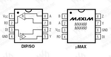 MAX488 概述MAX481、MAX483、MAX485、MAX487-MAX491以及MAX1487是用于RS-485与RS-422通信的低功耗收发器,每个器件中都具有一个驱动器和一个接收器。MAX483、MAX487、MAX488以及MAX489具有限摆率驱动器,可以减小EMI,并降低由不恰当的终端匹配电缆引起的反射,实现最高250kbps的无差错数据传输。MAX481、MAX485、MAX490、MAX491、MAX1487的驱动器摆率不受限制,可以实现最高2.5Mbps的传输速率。 这些收发器在驱动器禁用的空载或满载状态下,吸取的电源电流在120μA至500μA之间。另外,MAX481、MAX483与MAX487具有低电流关断模式,仅消耗0.1μA。所有器件都工作在5V单电源下。 驱动器具有短路电流限制,并可以通过热关断电路将驱动器输出置为高阻状态,防止过度的功率损耗。接收器输入具有失效保护特性,当输入开路时,可以确保逻辑高电平输出。 MAX487与MAX1487具有1/4单位负载的接收器输入阻抗,使得总线上最多可以有128个MAX487/MAX1487收发器。使用MAX488-MAX491可以实现全双工通信,而MAX481、MAX483、MAX485、MAX487与MAX1487则为半双工应用设计。 |