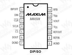MAX504 概述The MAX504 are low-power, voltage-output, 10-bit digital-to-analog converters (DACs) specified for single +5V power-supply operation. the MAX504 can also be operated with ±5V supplies. The MAX504 (with internal reference) draws only 260µA. The MAX504 comes in 14-pin DIP and SO packages. |