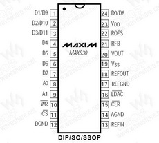 MAX530 概述The MAX530 is a low-power, 12-bit, voltage-output digital-to-analog converter (DAC) that uses single +5V or dual ±5V supplies. This MAX530 has an on-chip voltage reference plus an output buffer amplifier. Operating current is only 250µA from a single +5V supply, making it ideal for portable and battery-powered applications. |
