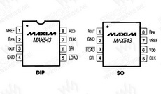 MAX543 概述The MAX543 is a 12-bit, current-output, multiplying digital-to-analog converter (DAC) that comes in space-saving 8-pin DIP and 8- or 16-pin surface-mount SO packages. Its 3-wire serial interface saves additional board space and also results in low power dissipation. When used with microprocessors (µPs) with a serial port, the MAX543 minimizes the digital noise feedthrough from its input pins to its output. The serial port can be used as a dedicated analog bus and kept inactive while the MAX543 is in use. Serial interfacing also reduces the complexity of opto- or transformer-isolated applications. |