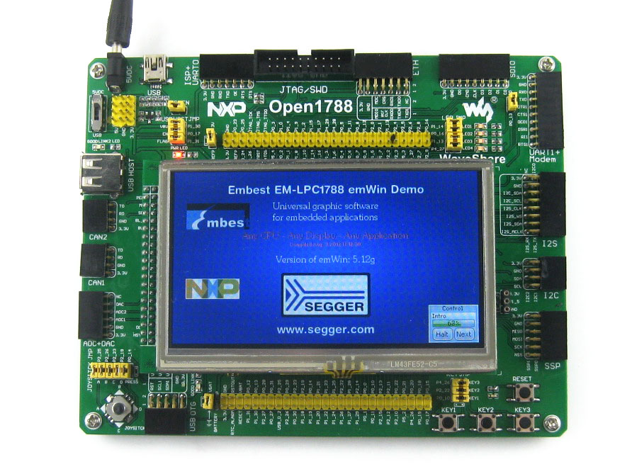 LPC Cortex M3开发板Open1788是一块以LPC1788FBD208为主控芯片的开发板,它带有丰富的扩展接口,支持各类外围模块的接入。