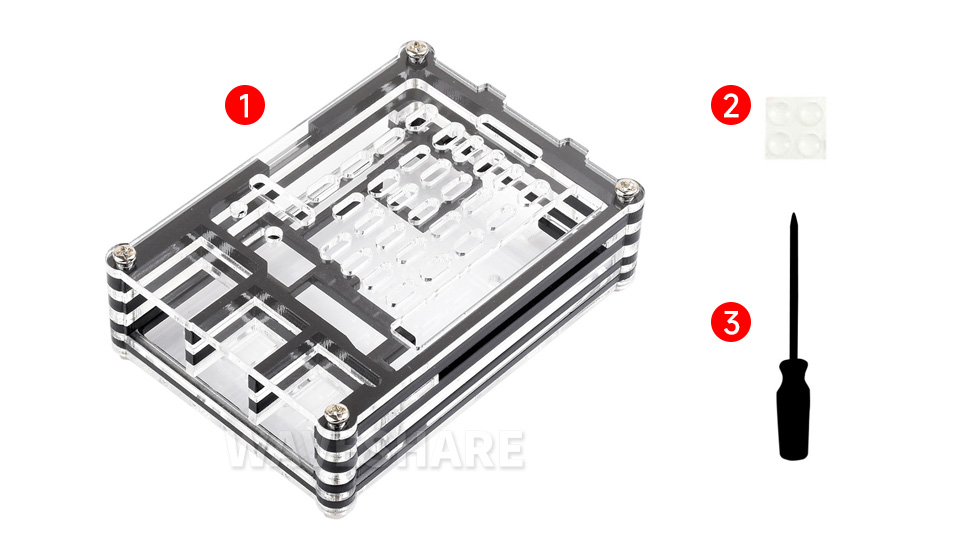 配有电源按键、防滑胶垫和螺丝刀,安装简便,美观防尘