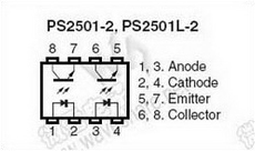 PS2501-2光电耦合隔离器包含一个砷化镓发光二极管和一个NPN型硅光电晶体管。PS2501-2的封装为塑料DIP(双列直插封装),而PS2501L-2则是适用于贴片安装的弯曲引脚(鸥翼型)封装。
