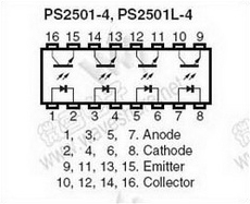 PS2501-4光电耦合隔离器包含一个砷化镓发光二极管和一个NPN型硅光电晶体管。PS2501-4的封装为塑料DIP(双列直插封装),而PS2501L-4则是适用于贴片安装的弯曲引脚(鸥翼型)封装。
