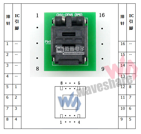 | 特点 | QFN8转DIP8,底板引出为双列直插排针,引脚间距2.54mm(100mil),宽度0.76cm(300mil) |