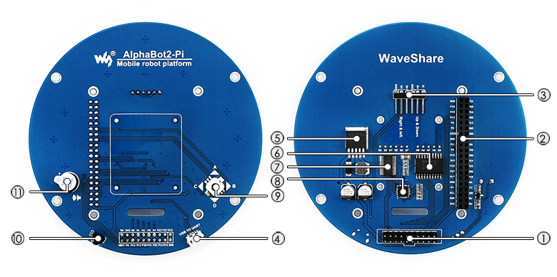 - 板载AlphaBot2控制接口,可接入Raspberry Pi适配板或Arduino适配板