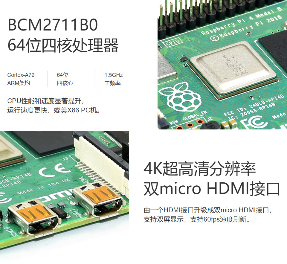2GB内存版本、1.5GHZ CPU、蓝牙5.0、双HDMI接口、POE以太网接口