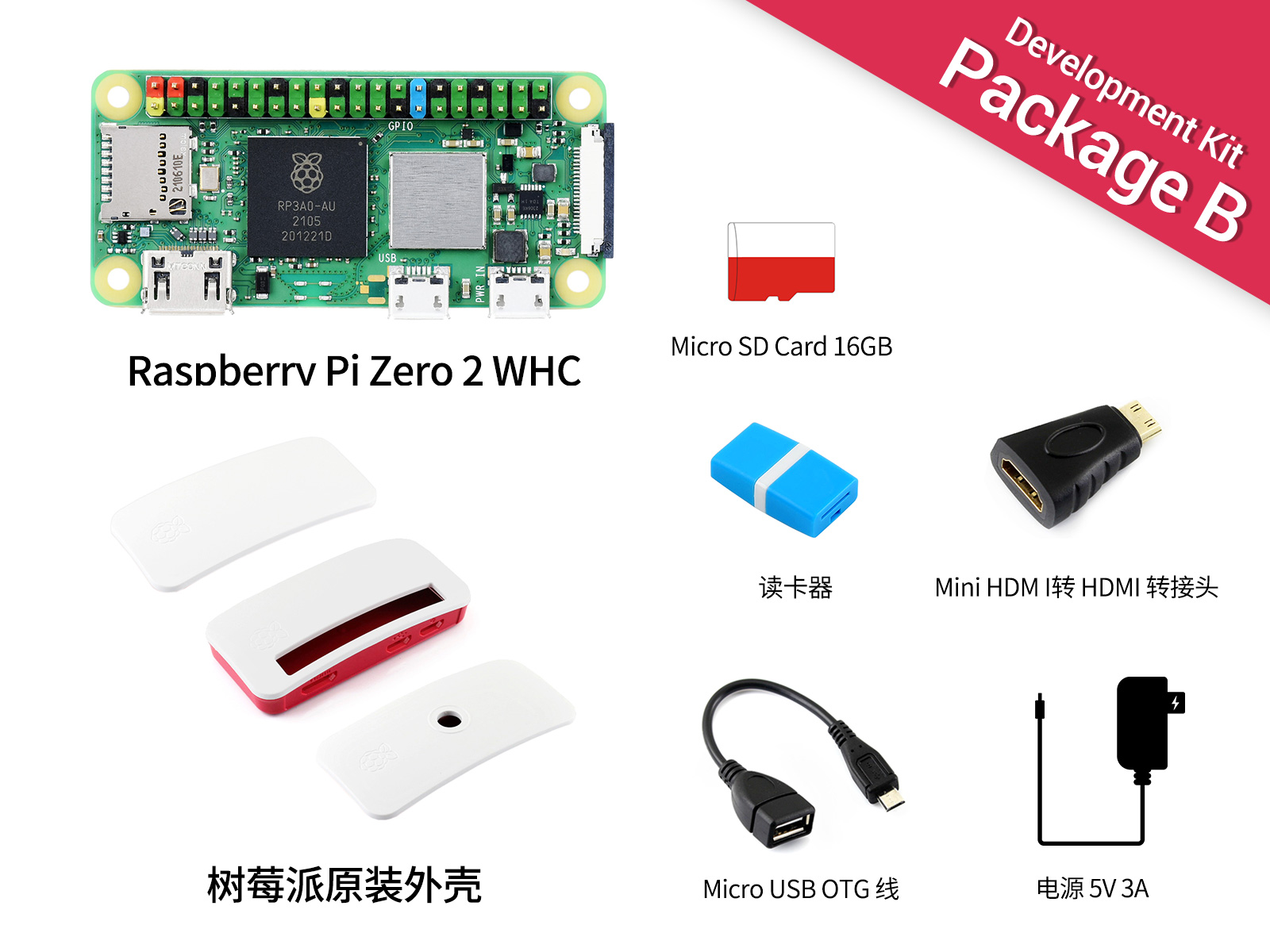 套餐 B 是入门套餐,如果你从来没有玩过树莓派,选这个就能满足基本的运行需要了,搭配 16GB 内存卡,可以把系统装进去并运行,还搭配了套餐 A 的配件,方便接入其它的外设,另外还配置一款树莓派官方经典红白色外壳,非常美观且实用。